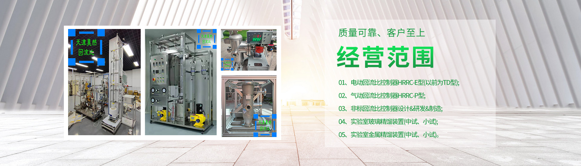 01、電動回流比控制器HRRC-E型(以前為TD型);02、氣動回流比控制器HRRC-P型;03、非標回流比控制器設計&研發&制造;04、實驗室玻璃精餾裝置(中試、小試);05、實驗室金屬精餾裝置(中試、小試)。